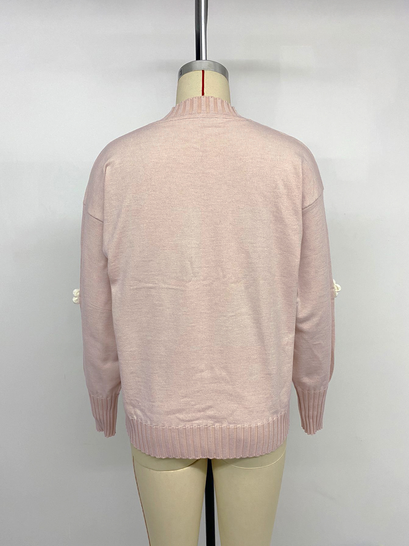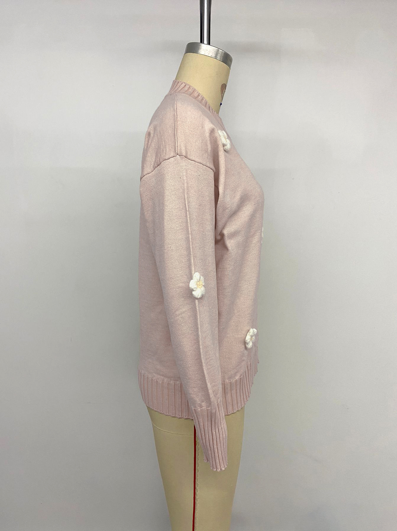 Flower Decorative Knitted Pullover Crew Neck Sweater