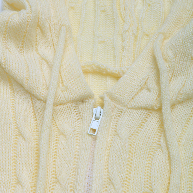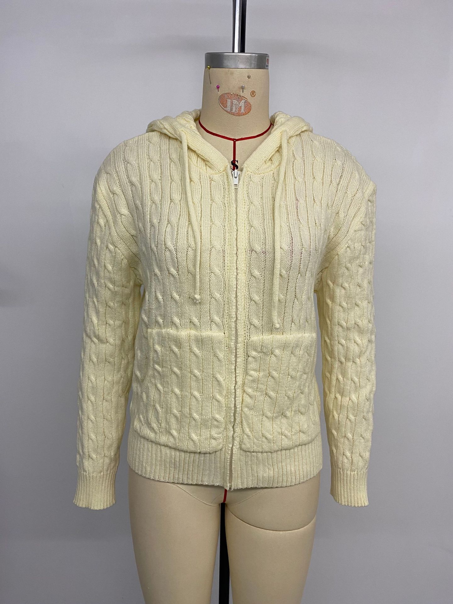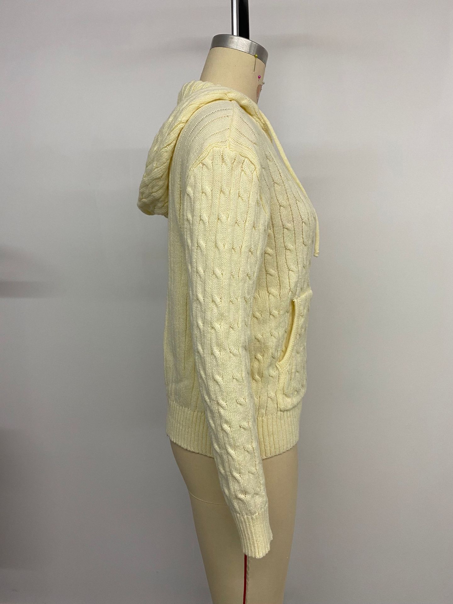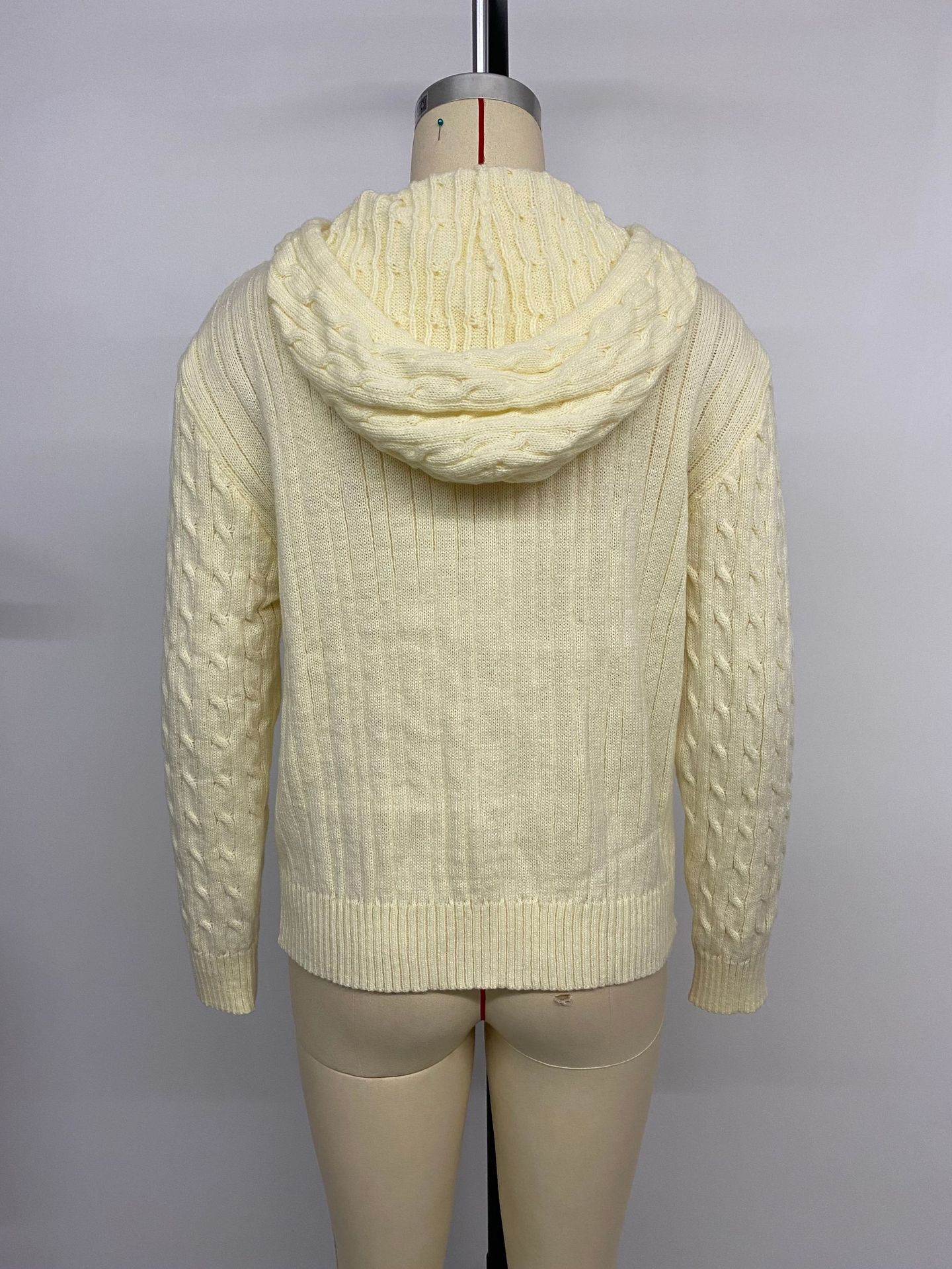 Women's Hooded Twisted Solid Color Sweater Cardigan